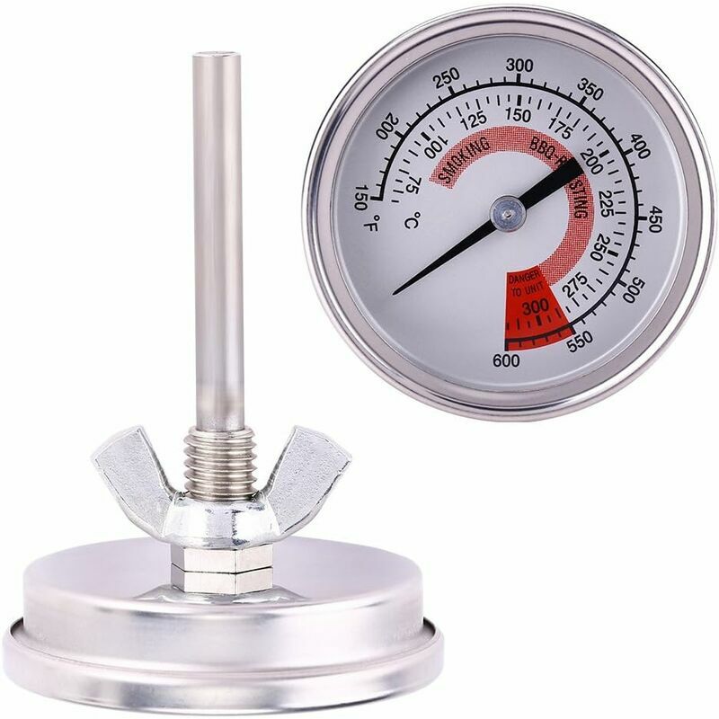 MATERIALE SOLIDO - Il termometro per fumatori adotta un corpo in acciaio inossidabile con quadrante in vetro temperato per una lunga durata.< /p> 【 GAMMA DI MISURA】 L'intervallo di temperatura di misurazione è: 75 ℃ -300 ℃/150 ℉ -600 ℉ con elevata precisione. 【FACILE DA INSTALLARE】 Filettatura della vite e dado ad alette per un facile montaggio sulla griglia, sul forno o pannello del forno per un comodo utilizzo. 【FACILE DA LEGGERE】 Leggere facilmente la temperatura attraverso il quadrante. 【AMPIO USO】 Il termometro per grill può essere utilizzato per la misurazione e il controllo della temperatura in macchinari, industria chimica, industria tessile leggera, industria medica, barbecue, ecc. < p>Materiale Il termometro per fumatori adotta un corpo in acciaio inossidabile con quadrante in vetro temperato per una lunga durata. Facile da installare Filettature e dado ad alette per facile montaggio sulla griglia, sul forno o sul pannello del forno per un comodo utilizzo. Intervallo di