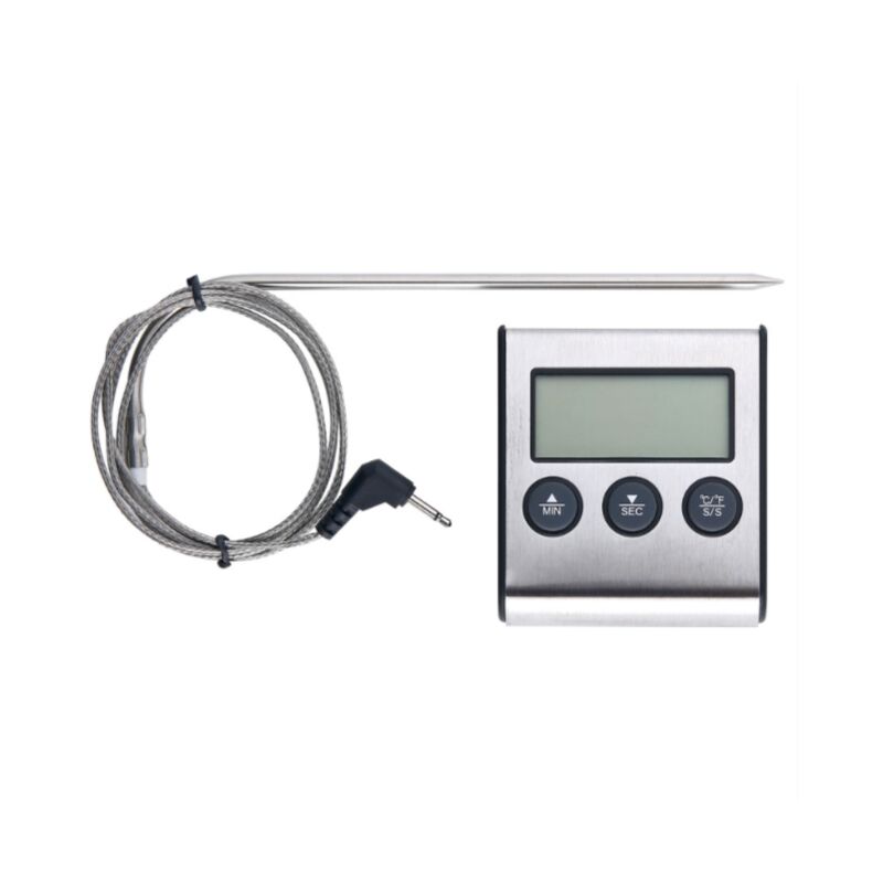 Termometro con display digitale chiaro, temperatura di allarme può essere impostata. Fahrenheit e Celsius possono essere facilmente commutati premendo il pulsante. < p> C'è un magnete sul retro del prodotto, che può essere fissato al frigorifero o all'armadio, che è più adatto per la conservazione. < /p> Il display della temperatura può cambiare la funzione timer tramite il pulsante sul retro del termometro. Questo termometro non è più venduto all'esterno. Il manuale è disponibile in inglese, francese e tedesco. Specifiche del termometro Il timer può essere impostato su un massimo 99 minuti e 59 secondi. Il termometro può essere regolato fino a 250 gradi Celsius o 482 gradi Fahrenheit 1 batteria AAA per l'alimentazione (batteria non inclusa nel normale trasporto) < p>< /p> Intervallo di temperatura: 0~250 Precisione di temperatura: +/- 1℃ Dimensioni del prodotto 70X65X20MM Nota: Quando si inserisce la sonda nella carne per misurare la temperatura, evitare di toccare l'osso