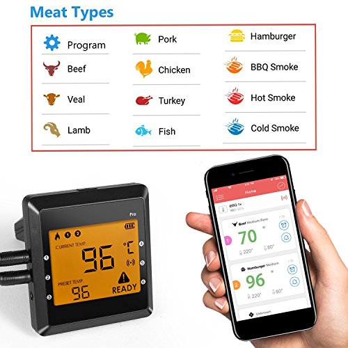 【Termometro Barbecue a 6 sonde】:il nostro termometro digitale per carne wireless consente di monitorare sei diverse carni o di leggere contemporaneamente la temperatura di griglia / forno / fumatore.