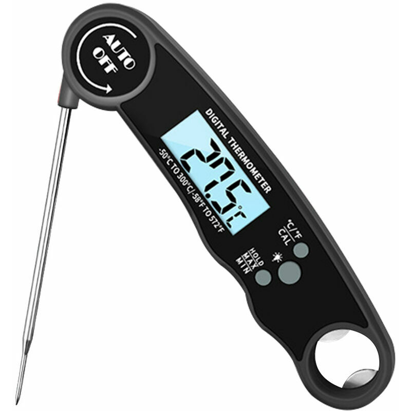 Descrizione del prodotto 1. 【Temperatura di visualizzazione super veloce】: il nostro termometro digitale per carne a lettura istantanea rileva una temperatura in così poco tempo. La testa della sonda è facile da attaccare alle carni. Tenendolo nel cibo per 2-4 secondi, otterrai la temperatura precisa, fornendoti un riferimento di temperatura accurato, sia per friggere bistecche di manzo che per friggere pesce/patate. schizzi d'olio. Supporta la visualizzazione Celsius e Fahrenheit da -58°F a 572°F (da -50°C a 300°C), consentendo la lettura sia di cubetti di ghiaccio che di bistecche alla griglia. Il pulsante Hold rende più facile vedere la temperatura. 3. 【Ampio schermo a portata di mano】: Il termometro per alimenti ha un ampio schermo retroilluminato, ti permette di vedere chiaramente la temperatura sia in cucina buia che in casa. L'impugnatura ergonomica rende la cottura un piacere totale., 4. 【Impermeabile ad alta resistenza】: il termometro per grill è super facile da pulire. La