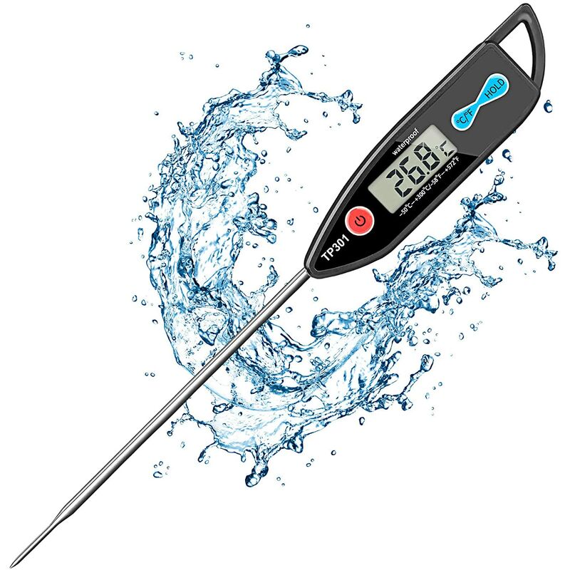 Sonda sensibile e ampia gamma: Dimensioni del termometro da cucina: 23,3 cm (9,17 pollici) * 2,5 cm (0,98 pollici), sonda: 12,6 cm (4,96 pollici). Adatto per grill, forno, ecc. La sonda è abbastanza lunga da evitare di scottarsi le mani durante la misurazione e rende facile ottenere letture in profondità nel cibo. Spiaggia: -50°C-300°C (-58°F-572°F). Lettura istantanea 3-5 secondi e alta precisione: termometro da cucina YAMYONE, sonda in acciaio inossidabile 304, ultrasottile e 1,7 mm letture di temperatura accurate e sensibili al diametro in 3-5 secondi. Precisione: ±1°C(±2°F). Mantieni la lettura: il termometro per carne ha un display e cifre grandi, facili da leggere per grigliare all'aperto giorno e notte. Un pulsante per mantenere la lettura, il cibo non verrà bruciato. Unità modificabili: °C / °F. Impermeabile e spegnimento automatico: il termometro per barbecue è resistente e pratico. IP68 impermeabile, non immergerlo in acqua, lavarlo sotto l'acqua corrente. Il termometro si