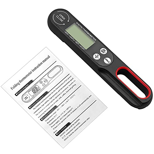 Termometro da Cucina, JiGiU Termometri Barbecue Pieghevole Sonda Lunga 3s Lettura Istantanea Termometro Carne Digitale LCD Schermo Retroilluminazione Termometro per Carne BBQ Latte Olio Alimenti -Nero