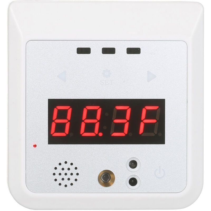 Realizzato in ABS e componenti elettronici di alta qualità, questo misuratore digitale multifunzione 2 in 1 è dotato di misurazione a infrarossi senza contatto della temperatura e funzioni di visualizzazione del tempo. Con prestazioni stabili e display LCD nitido, questo pratico termometro può essere posizionato sulla scrivania, montato a parete con un gancio per chiodi o fissato con un treppiede. Specifiche: Materiale: ABS + componenti elettronici Colore: bianco Alimentazione: alimentatore esterno USB 5V 1A / 3 batterie AAA (NON incluse) Interfaccia USB: Type-C Ingresso: DC 5V 500mA Intervallo di misurazione: 32℃~42℃ (89,6℉~107,6℉) Precisione di misurazione: ±0,2 ℃ Distanza di misurazione: misurazione automatica da 3 cm a 5 cm Tempo di risposta: 0,1 s Temperatura di funzionamento: 10℃~40℃ Schermo: display digitale LCD Metodo di installazione: posizionato sul desktop/gancio per chiodi/fissaggio con staffa Standby: 5 secondi standby automatico durante le ore non lavorative Dimensione