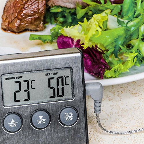 Termometro Digitale della Carne. 2 in 1 Grill & Kitchen Timer e Termometro di Cottura in Acciaio Inossidabile con Cavo Lungo. Garanzia di rimborso del 100%