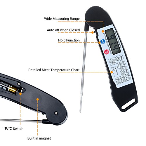 Termometro Digitale da Cucina - Termometro con Funzione di Spegnimento Automatico, Regolabile 180 ° Acciaio Inossidabile Tubo di Alimentazione, Carne, Latte, Barbecue, Grill e Bagno di Acqua