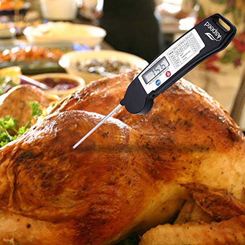 Termometro digitale da cucina a lettura istantanea AiSpeed, termometro con calamita posteriore e sonda pieghevole, adatto a cucina, grill, carne, dolci, temperatura in gradi C/F, spegnimento automatico
