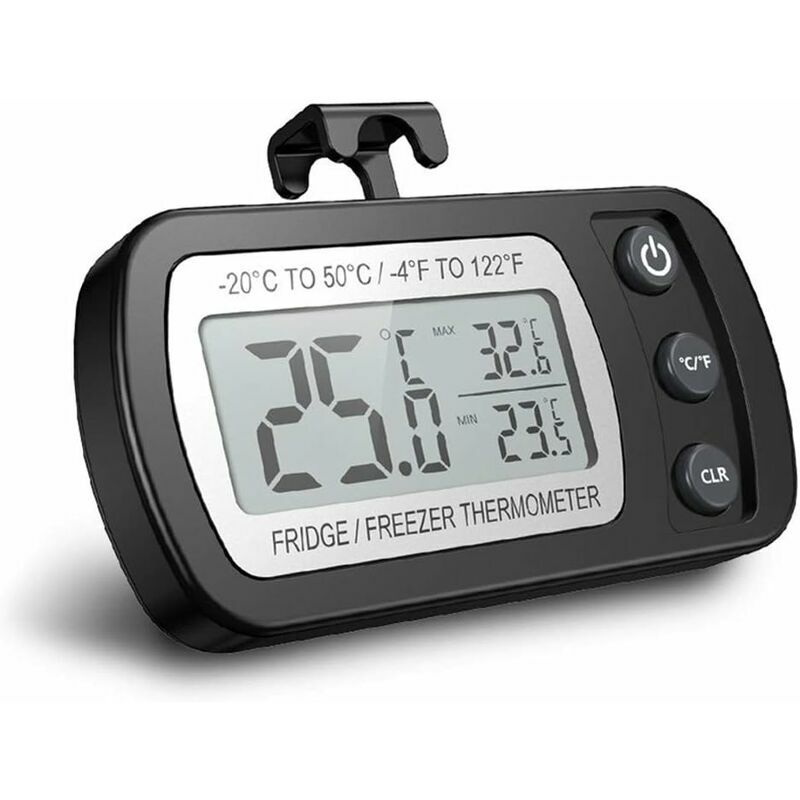 Ampio display LCD e impermeabile? - Un display LCD extra large e di facile lettura consente di leggere le misurazioni a colpo d'occhio, ideale per coloro che non hanno una visione migliore. La struttura impermeabile IPX3 mantiene l'umidità nel frigorifero o nel congelatore in piedi per un funzionamento sicuro. ?Funzionamento semplice e intelligente? - Termometro facile da usare con solo 3 pulsanti. Basta premere il pulsante di accensione per accendere e spegnere il termometro. Premere il tasto� C /� F per selezionare Celsius Fahrenheit. Premere il tasto CLR per eliminare il record Max Min. Quando si riavvia il termometro, la registrazione Max Min viene azzerata. < Br> ?Ampia gamma e alta precisione? - L'intervallo di temperatura di -20 50,50 ? (-4 ?o122 ?) con elevata precisione (� 1 1 / � 2 ?). Puoi usarlo in frigorifero, congelatore o come termometro ambiente per la sicurezza alimentare o altre occasioni. Br> ?Registrazione della temperatura minima e massima? - Il termometro del