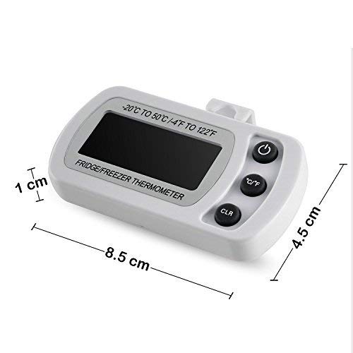 Gamma LARGA DELLA TEMPERATURA: L'intervallo di temperatura è da -20 ℃ ~ 50 ℃ (-4 ℉ ~ 122 ℉) che consente di utilizzare questo in frigorifero, congelatore o come un termometro generale della stanza.