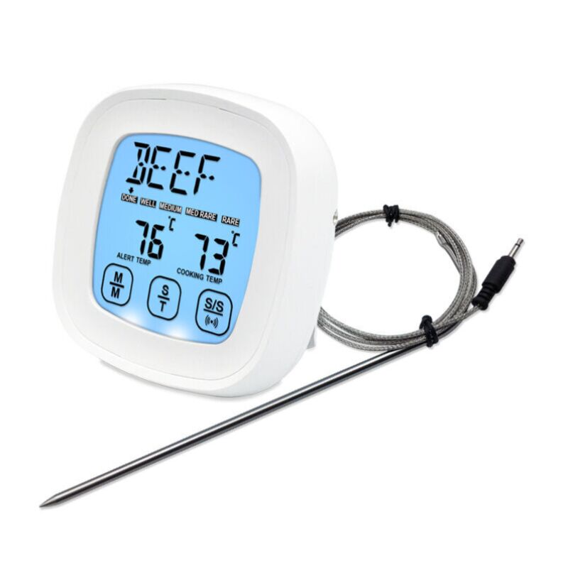 Touchscreen retroilluminato, il sensibile touchscreen LCD retroilluminato consente un facile utilizzo del termometro digitale per carne. Può essere utilizzato anche al buio. Leggi rapidamente la temperatura da qualsiasi angolazione, a colpo d'occhio. Per il piacere di tutta la famiglia, il termometro da forno varia in base alla maturità. Puoi anche regolare la temperatura in base alle tue preferenze personali. Così puoi preparare il tacchino più delizioso per le vacanze. Non preoccuparti del tempo di cottura, il termometro per alimenti ha un timer integrato con funzione di conto alla rovescia. Quando il tempo è scaduto o la sonda raggiunge la temperatura impostata, verrà emesso un segnale acustico. Questo termometro è perfetto per grigliare, arrostire, arrostire, friggere, cuocere caramelle e cioccolato e tutti i tipi di salumi.