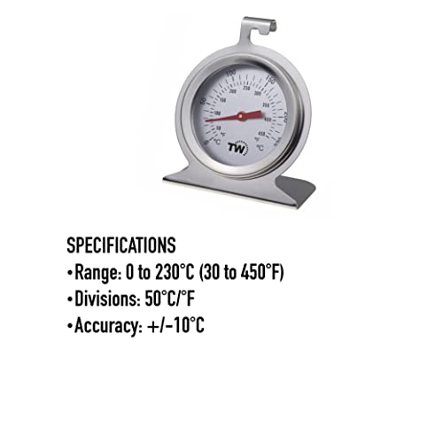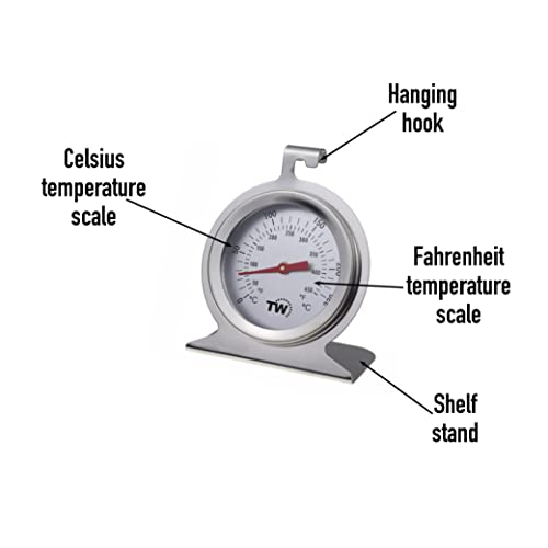 Ampia gamma di temperatura: questo classico termometro da forno misura da 0 a +230 °C, quindi è ideale per tutte le temperature di cottura e cottura. Adatto per appendere o sedersi sulla mensola del forno.