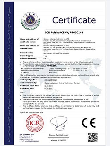 Termometro Frontale a Infrarossi - Con display LCD- Senza Contatto con la Pelle - Rilevazione in 0.5 secondi - 4 Funzioni