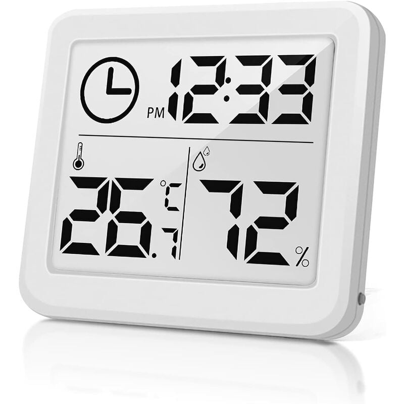 Funzione potente: la sveglia digitale con termometro per interni ha un sensore ad alta sensibilità, uno schermo LCD e un basso consumo energetico. Monitoraggio in tempo reale: la sveglia digitale con termometro per interni è la casa della semplice creatività, monitoraggio in tempo reale impareggiabile dei dati di temperatura e umidità interna. Vista confortevole: un semplice schermo LCD con scrittura chiara e facile lettura ti offre una visione confortevole. Montaggio a parete da tavolo Supporto: la sveglia digitale con termometro per interni è più leggera e sottile, facile da trasportare e ha quattro fori di monitoraggio sul retro. Ottimo posizionamento: posizionamento multifunzione, immersione in oro a 45 gradi, regolazione dell'interruttore, tempo di visualizzazione.