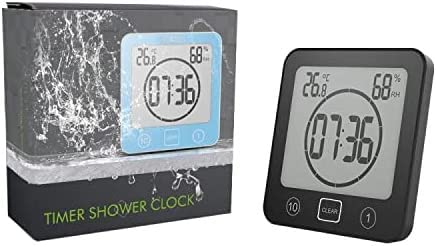 Termometro Igrometro Digitale, Orologio da Bagno Impermeabile Allarme Toccare Controllo Timer per il Conto Alla Rovescia, Termoigrometro da Interno per Casa Monitor di Temperatura e umidità (Nero)