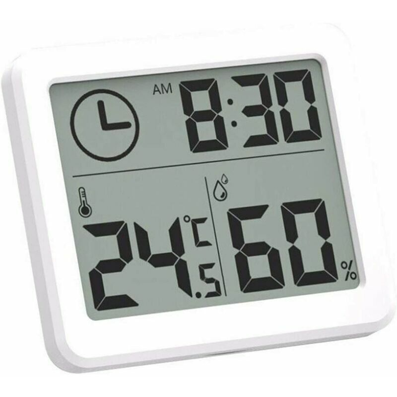 Funzione forte: la sveglia digitale con termometro per interni ha un sensore ad alta sensibilità, display LCD e basso consumo energetico. Monitoraggio in tempo reale: la sveglia digitale con termometro per interni ospita creatività semplice, monitoraggio in tempo reale dei dati di temperatura e umidità dell'ambiente interno. Visualizzazione confortevole: il semplice display LCD con caratteri chiari e di facile lettura può offrire una visione confortevole. Supporto da parete e supporto da tavolo: l'interno la sveglia digitale con termometro è più leggera e sottile, facile da trasportare, con quattro fori di monitoraggio sul retro. Ampio posizionamento: posizionamento multifunzione, tuffo in oro a 45 gradi, regolazione dell'interruttore, tempo di visualizzazione. Dimensioni: schermo grande da 3,2 pollici 81 mm × 71 mm × 10 mm Orologio in cristallo: 12 ore (AM è il periodo mattutino, PM è il periodo pomeridiano) Intervallo di misurazione della temperatura: -10~70c< /p> Precisione della
