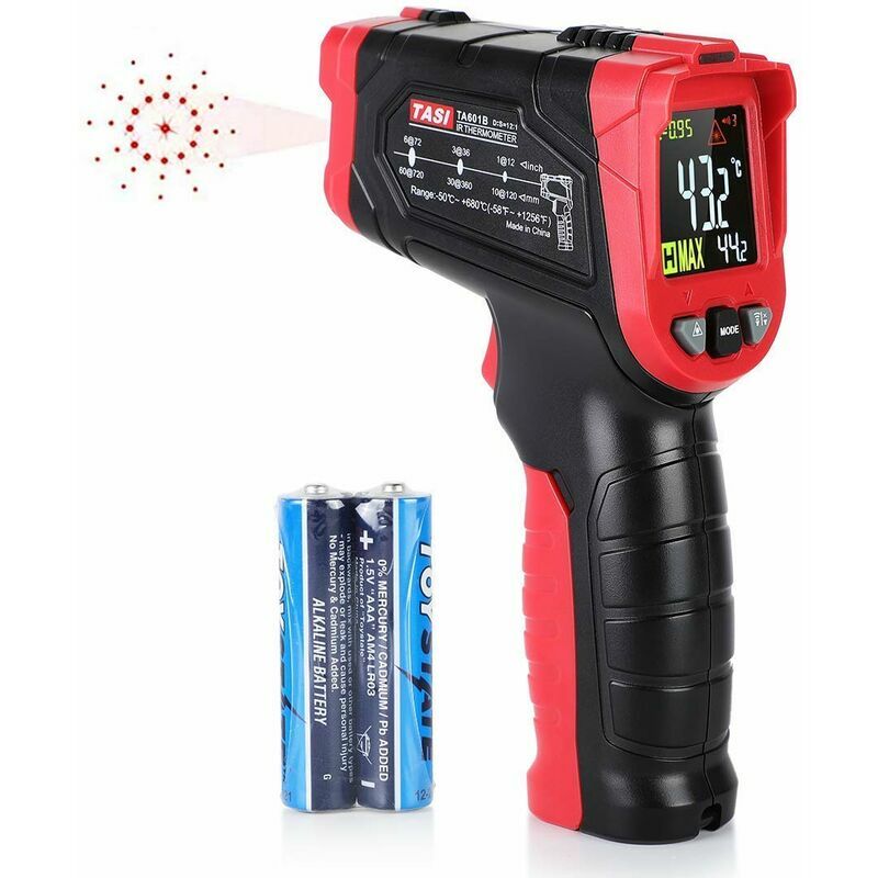Ampio campo di misurazione - : termometro a infrarossi con il suo ampio intervallo di temperatura -50 ℃ ~ 480 ℃ (-58 ℉ ~ 896 ℉), puoi utilizzare questo strumento per cucinare, grigliare, mantenere auto, riparazioni domestiche o altre faccende domestiche . 【Display LCD a colori HD】: lo schermo dati più chiaro e più grande fa risaltare questo termometro laser IR soprattutto al buio . Ha anche una funzione di spegnimento automatico e un indicatore di batteria scarica per prolungare la durata della batteria. Lo spegnimento automatico si attiva dopo 10 secondi di inattività, quindi non si esaurisce la batteria (batteria inclusa). 【Allarme temperatura alta/bassa】: il termometro a infrarossi visualizza il minimo, il massimo, la differenza tra le due temperature e le temperature medie. L'indicazione diventa rossa quando la temperatura misurata raggiunge la temperatura alta/bassa impostata, che può rilevare se la temperatura viene raggiunta o superata a una temperatura specifica. 【°C