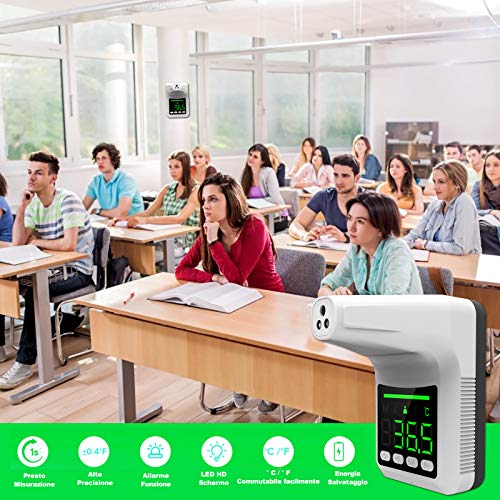 Termometro a infrarossi montato a parete , Termometro digitale frontale senza contatto con schermo LCD di allarme per uffici, fabbriche, negozi, scuole (senza batteria inclusa)