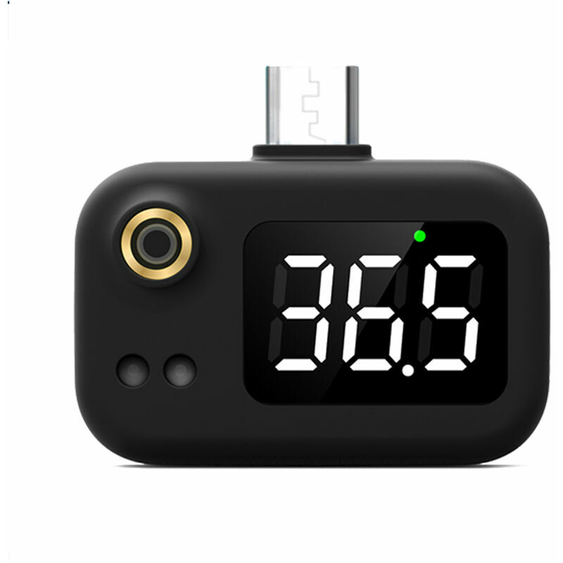 È un termometro compatto che non Non ha bisogno di una batteria, basta collegarlo al telefono e puoi usarlo. Caratteristiche: Realizzato con materiali di buona qualità, pratico e ha una lunga durata. Con il display a LED, puoi leggere chiaramente. °C / °F possono essere convertiti con un clic e il termometro può essere utilizzato per diverse abitudini di lettura. La temperatura può essere misurata in pochissimo tempo senza contatto. Sicurezza e salute. Invece di un termometro tradizionale, il corpo è più sottile, delle dimensioni di una chiave dell'auto e più facile da trasportare. Con sensori sottili, i dati sono accurati. Caratteristiche: Colore nero Materiale: plastica Campo di misurazione: 32 ° C ~ 42 ° C Precisione: modalità temperatura corporea ± 0,2 °C Distanza di misurazione: 10-80mm Tempo di misurazione: 1 secondo Condizioni ambientali: 10°C ~ 35°C Umidità: ≤85 % Precisione/modalità temperatura corporea: 32,0 ℃ entro gli intervalli -42,9 ℃: ±0,2 ℃ Fuori dagli intervalli 32,0