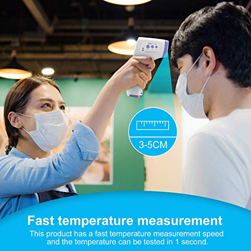 【Senza Contatto e Veloce】- È facile da usare. Accendere il termometro, premere il pulsante di misurazione, i risultati vengono visualizzati sullo schermo LCD entro 1 secondo dal promemoria acustico (è possibile attivare e disattivare il promemoria acustico premendo il pulsante di misurazione per 5 secondi)