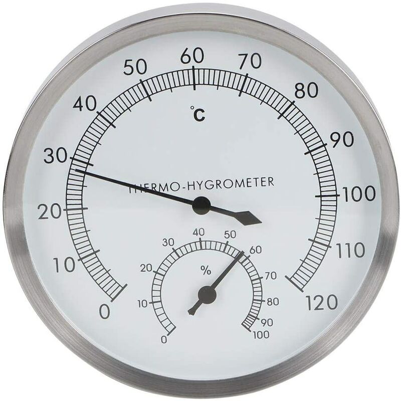 Questo termoigrometro 2 in 1 è lo strumento perfetto per controllare l'umidità e la temperatura della sauna. Realizzato in acciaio inossidabile di alta qualità, è durevole, resistente all'usura e alle alte temperature. La scala del quadrante è sottile e chiara, di facile lettura ed è molto adatta per la stanza della sauna. La temperatura indicata dal termometro varia da 10 ° C a 120 ° C, e l'umidità indicata dall'igrometro varia dallo 0% al 100%. Eccellente fattura, prestazioni stabili, adatto per sauna, bagno turco, rigoroso controllo della temperatura e umidità nella sauna.