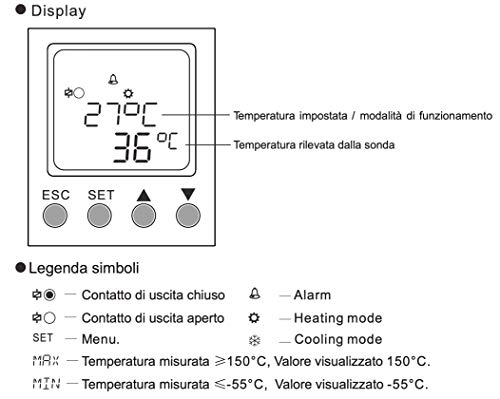 Campo di misurazione della temperatura -25°C ~ 130°C - Funzione di allarme