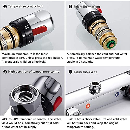 Temperatura costante: il miscelatore termostatico per doccia ha un sistema di temperatura costante intelligente, può mantenere stabile la temperatura dell'acqua in un tempo rapido e facile da controllare il flusso d'acqua senza rompersi.