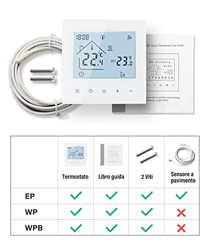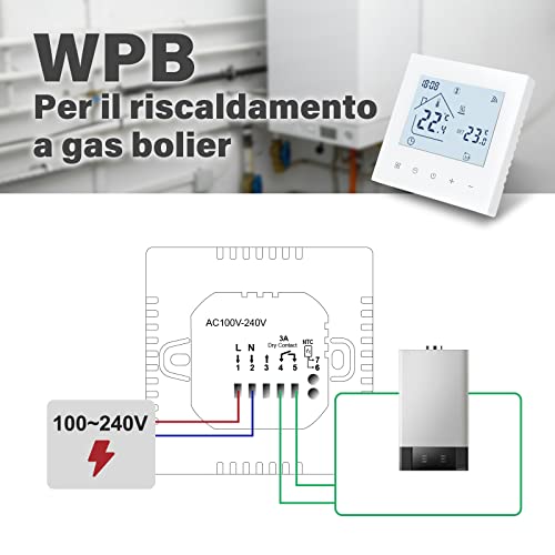 Termostato Caldaia Wifi,Termostati Smart Digitale per Riscaldamento Ambiente,Cronotermostato Wifi Programmabile con Schermo LCD,Compatibile Alexa 3A Bianco TDR89W-WIFI-WPB
