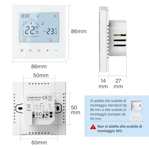 Smart Wifi Riscaldamento: Adatto per caldaia di controllo con cablaggio a contatto secco. Controlla il tuo termostato wifi da qualsiasi luogo e in qualsiasi momento tramite l'app smartphone "tuya".