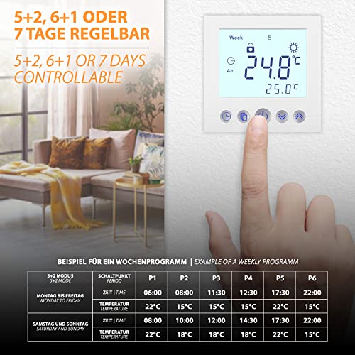 Programma settimanale individuale (5+2, 6+1, 7 giorni), la programmazione viene mantenuta dopo un'interruzione di corrente