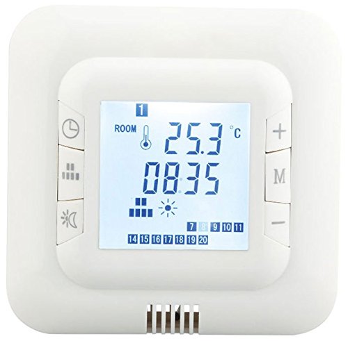 Termostato digitale per riscaldamento a pavimento adatto alla maggior parte dei sistemi di riscaldamento elettrico sensore di aria e di Pavimento inclusi Retroilluminazione Bianco Carico Massima 16 A