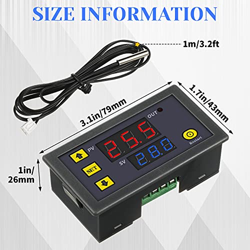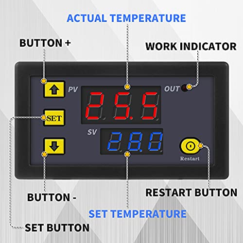 Termostato Digitale LCD W3230 Regolatore di Temperatura DC 12V 20A Interruttore di Controllo -50-110 Gradi Celsius con Sonda di Temperatura Allarme di Alta Temperatura per Frigo, Trasparente (2 Pezzi)