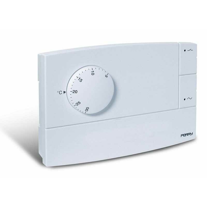 PERRY 1TPTE500B Alimentazione: 230V Frequenza: 50-60Hz Libero da potenziale: 8(2)A/250Vc.a. Funzionamento: ON/OFF con differenziale fisso 0.4°C Livelli di temperatura: 1 con regolazione continua Dimensioni (LxPxH): 120 x 27.5 x 81 mm Colore: Bianco