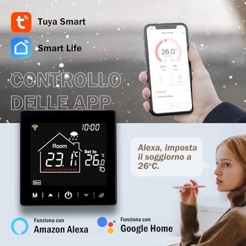 Termostato wifi caldaia gas Programmabile settimanalmente, Cronotermostato WIFI Tuya smart,Termostato digitale intelligente compatibile con Alxea,Termostato Smart Schermo LCD TR9
