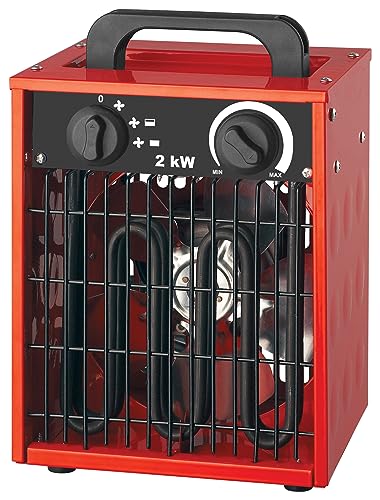 Riscaldamento rapido ed efficace: il termoventilatore industriale con 2000 Watt di potenza e un elemento riscaldante in acciaio inox garantisce calore rapido ed efficace in officine, garage o magazzini fino a max. Superficie di 25 m² a 2,5 m di altezza.