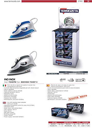 Termozeta 73467 INO Inox Mix Grigio, 2000 W, 0.2 Litri, Acciaio Inossidabile, Bianco/Blu