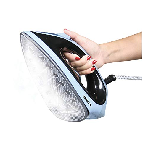 Ferro da stiro a caldaia. Carica continua. Autonomia illimitata. Stiratura veloce e senza interruzioni. Serbatoio estraibile. Piastra con rivestimento in ceramica per massima scorrevolezza