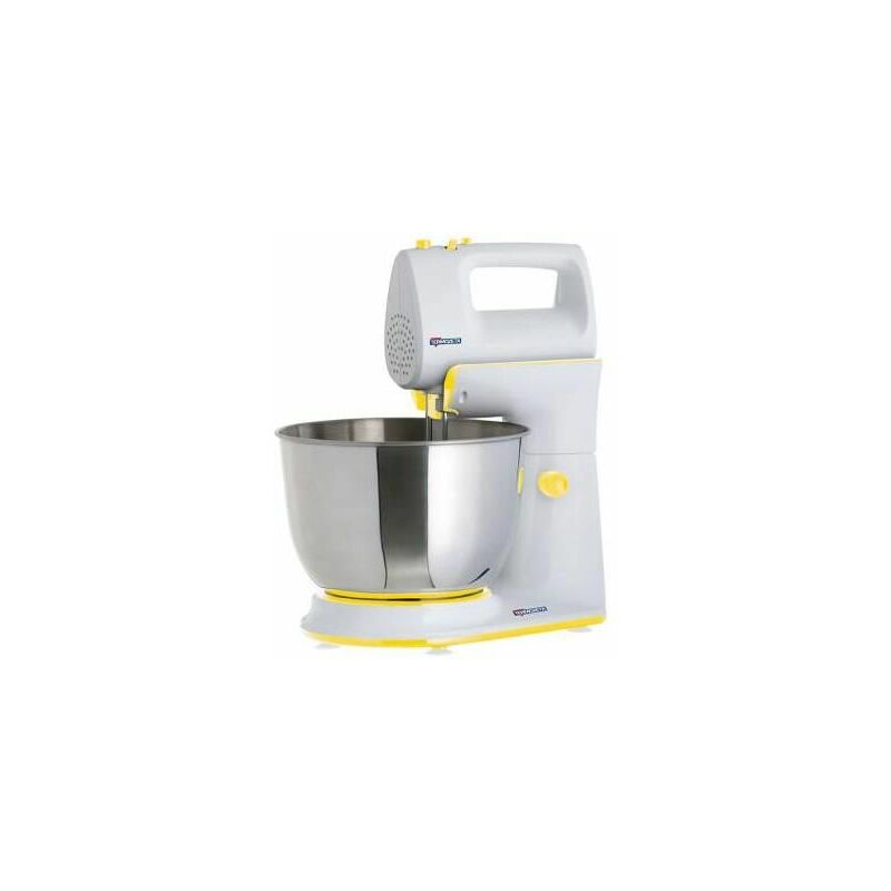 Sbattitore dotato di supporto e ciotola in acciaio inox girevole, utilizzabile anche separatamente 5 velocit +turbo capacit ciotola: 3 l 2 fruste ad anello per sbattere, emulsionare, miscelare 2 fruste a spirale per impastare tasto di espulsione delle fruste potenza: 250-300w alimentazione: 220-240v-50/60hz. SCHEDA TECNICA Descrizione e caratteristicheFonte di alimentazione:Elettrico Colore:Grigio Potenza:300 W