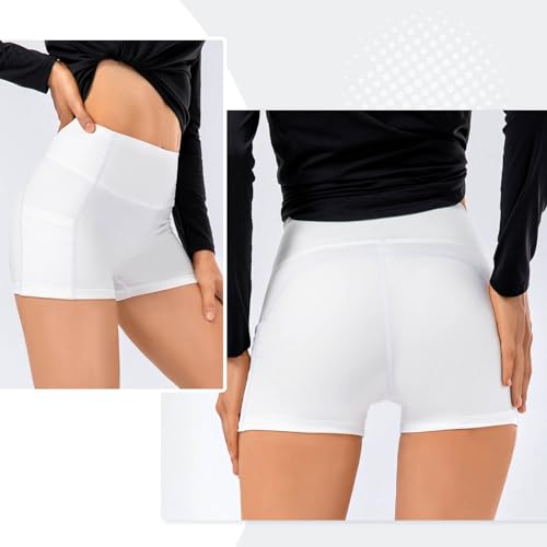 TERODACO Pantaloncini da corsa da donna con tasca per telefono, comodi pantaloncini da palestra da donna a vita alta, pantaloncini da yoga elasticizzati ad asciugatura rapida senza cuciture, bianco, M