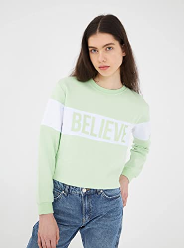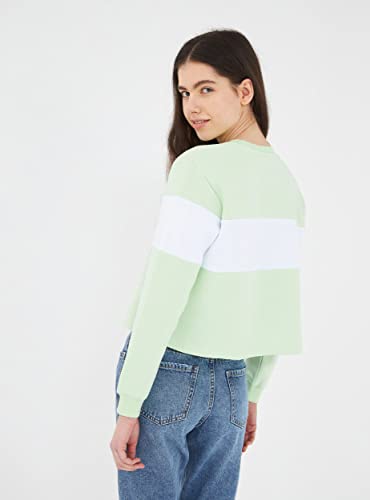 TERRANOVA - Felpa Chiusa da Donna in Tessuto Felpato. Modello Girocollo e Maniche Lunghe. Fantasia Block Color con Scritta Frontale. vestibilità Crop.