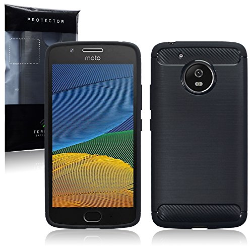 TERRAPIN TPU Gel Custodia per Motorola Moto G5 Cover, Colore: Fibra Di Carbonio & Filiforme Schema Nero