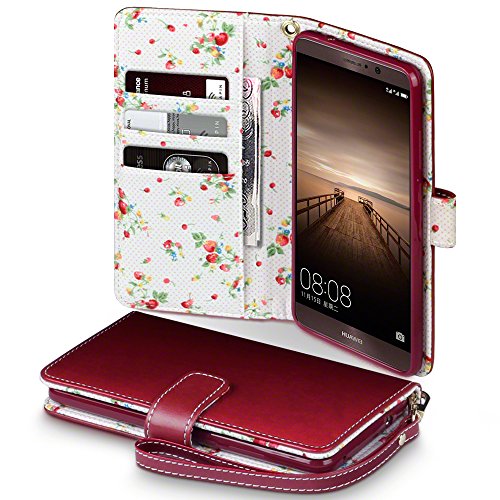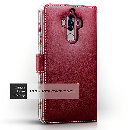 TERRAPIN Mate 9 Cover, Premium di cuoio del raccoglitore per Huawei Mate 9 Custodia Pelle, Colore: Rosso, Floreale Interno