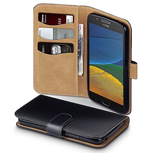 TERRAPIN Moto G5 Cover, Premium di Cuoio del Raccoglitore con Funzione di Appoggio Posteriore per Motorola Moto G5 Custodia Pelle, Colore: Nero, Bruna
