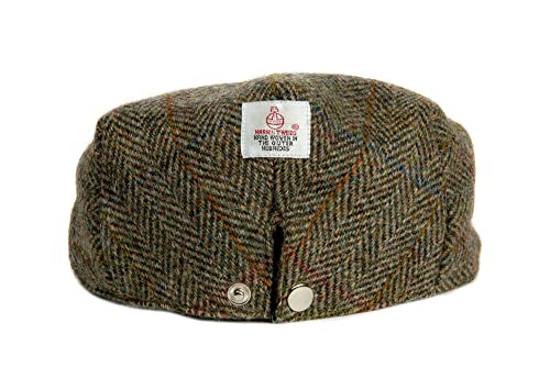 Questo berretto piatto Harris Tweed è progettato con un bottone a pressione e borchie sul retro per consentire tre diverse dimensioni.
