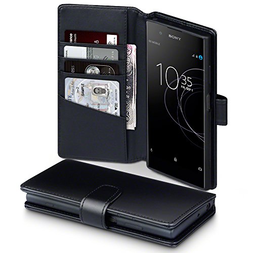 TERRAPIN Xperia XA1 Plus Cover, Vera Pelle della Cassa del Raccoglitore con Funzione di Appoggio Posteriore per Sony Xperia XA1 Plus Custodia Pelle, Colore: Nero