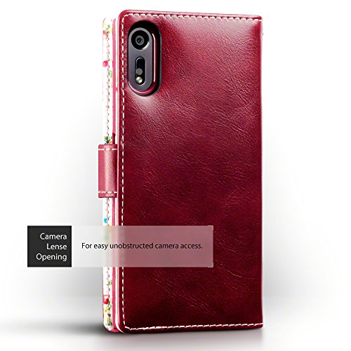 TERRAPIN Xperia XZ/XZs Cover, Premium di cuoio del raccoglitore per Sony Xperia XZ/XZs Custodia Pelle, Colore: Rosso, Floreale Interno