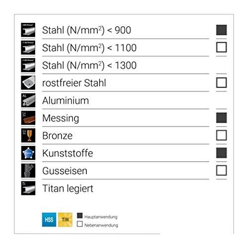 Indicazioni: ideale per trapanare fori di acciaio, resistenza (fino a 900 N/mm²), plastiche, ottone e bronzo