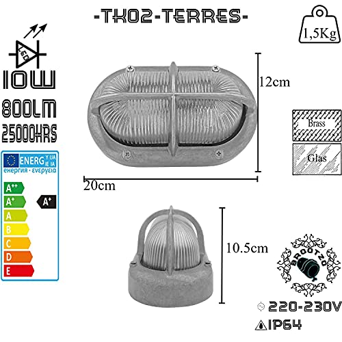 IP64, E27, Max. 60W, Lunghezza: 20x Larghezza: 11.5 x Altezza:10.5 cm, Peso: 1.5kg / LED 10W 800LM