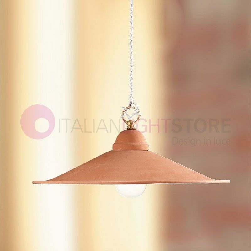 Lampada a sospesione in ceramica terracotta con diffusore liscio d.43. Lampadario a sospensione in ceramica terracotta, ideale per l'illuminazione della cucina o del tavolo da pranzo, collezione Terricciola di Ceramiche Borso . La lampada ha elementi in ceramica terracotta lavorata a mano ;