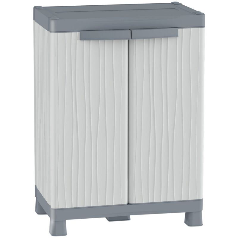 Codice produttore (MPN) / EAN: 1002569 / 8005646025693 Descrizione: Armadio plastica Terry 1002569 WAVE Base 700 Grigio chiaro e scuro Caratteristiche Generali Tipologia: Armadietto basso doppia anta Sistema di assemblaggio: Incastro (Montaggio 15 min) Utilizzo: Interno ed esterno Resistenza al gelo: Non resiste al gelo, resiste all'acqua Ripiani: 2 (regolabili) Portata Ripiano: 30 kg Accessori inclusi: 2 vaschette portaoggetti + 2 barre appenditutto Caratteristiche fisiche Dimensioni esterne: 70 x 43,8 x h. 97,6 cm Materiale: Resina Termoplastica alta resistenza Finitura: Rigata effetto onda Colore: Grigio chiaro/scuro Informazioni Linea: Wave Note: Piedino rialzato - Apertura ante a 180° - Predisposizione per lucchetto