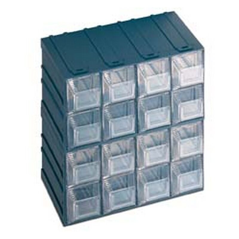 Assemblabile ad incastro con 16 cassetti trasparenti e porta etichetta frontale