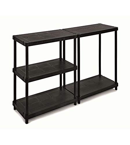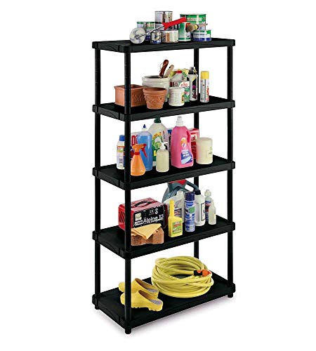 Caratteristiche: scaffale in plastica (polipropilene) a 5 ripiani. 4 piedi d'appoggio. Portata massima del ripiano di 45 kg